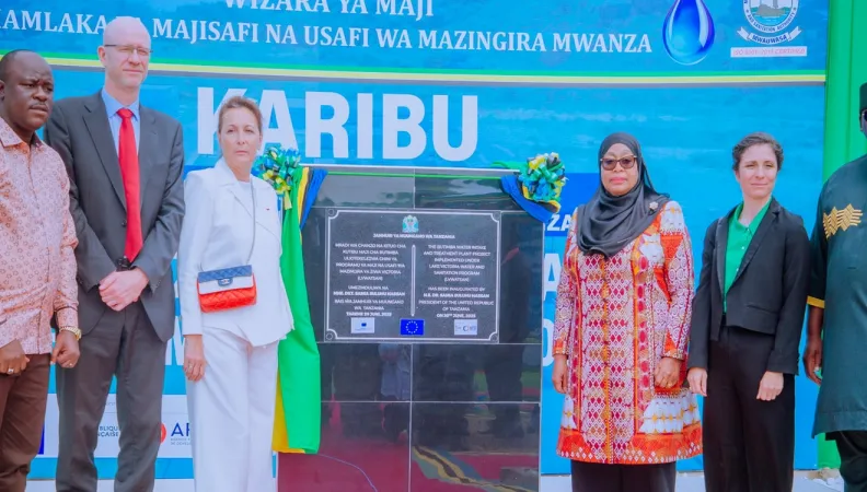 Dar es Salaam, Tanzania, June 20, 2025 – The Government of Tanzania today joined the European Union (EU) France and the European Investment Bank (EIB Global) in launching the Butimba Water Treatment Plant, a facility of the completed works for the Lake Victoria Water and Sanitation Project (LVWATSAN). The €150 million project involved the extension and upgrading of the water supply and sanitation systems and safe hygiene practices in the city of Mwanza and the satellite towns of Misungwi, Magu, Lamadi, Bukoba and Musoma. An inauguration ceremony also took place in Lamadi on 19th June in the presence of the President of United Republic of Tanzania, Dr Samia Suluhu Hassan.