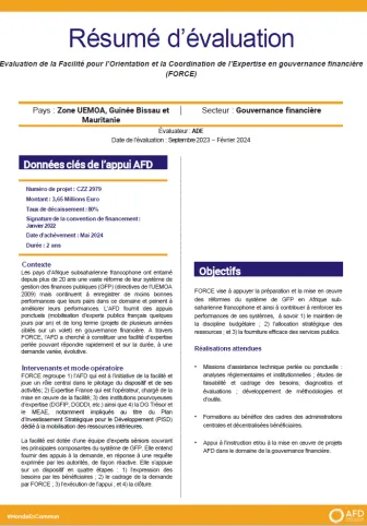 Evaluation de la Facilité pour l’Orientation et la Coordination de l’Expertise en gouvernance financière (FORCE), Zone UEMOA, Guinée Bissau et Mauritanie