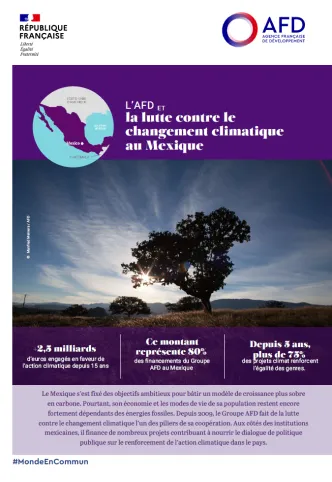 Le Mexique a établi des objectifs nationaux ambitieux pour la mise en place d’un modèle de croissance plus sobre en carbone. Cependant, l’économie et les modes de vie sont encore très carbonés. Depuis 2009, l’AFD a fait de la lutte contre le changement climatique un pilier de sa coopération avec le Mexique. Elle accompagne plusieurs projets et renforce les dialogues de politique publique.